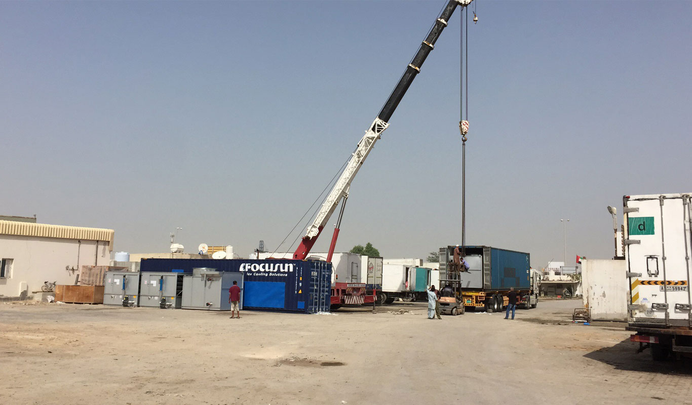 5 وحدات من ماكينات صنع الواح الثلج بنظام التبريد المباشر بنظام الحاوية بقدرة 25 طن في اليوم في دبي- الامارات العربية المتحدة