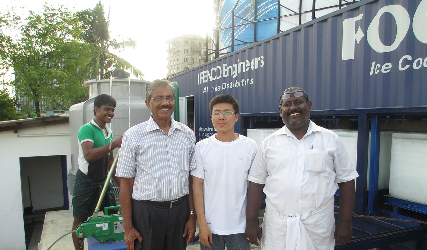 ماكينة صنع الواح الثلج بنظام التبريد المباشر بنظام الحاوية بقدرة 15 طن في اليوم في الهند مع تثبيت في الموقع.